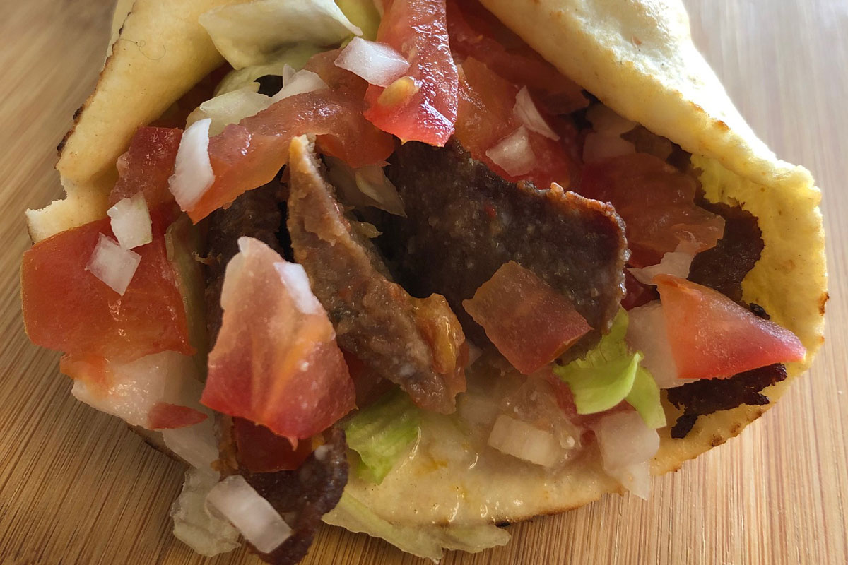 Specially seasoned beef, tomatoes and onions, drizzled with sweet Donair sauce all wrapped in a warm pita- beautiful!
